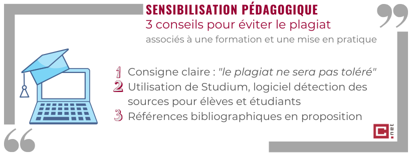 - Pour commencer, quand les consignes sont claires, le risque d'infraction se raréfie. Dans l'énoncé, le professeur rappelle ainsi que le plagiat n'est pas permis pour le devoir demandé. Le cadre étant établi, l'étudiant est averti. L'enseignant peut aussi demander une bibliographie complète avec des sources vérifiées.
